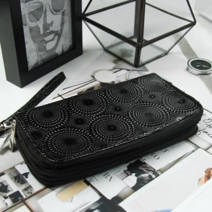 Кошелек жен 08-03-08 Спирали 18, 5*4*9, 5, 4отд на молниях, д/карт, д/монет, с ручкой, черный 3505851