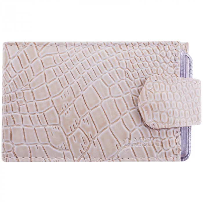 Кредитница OfficeSpace на 18 карт с кнопкой, кожа тип 1.1, крокодил лак, бежевый, горизонт