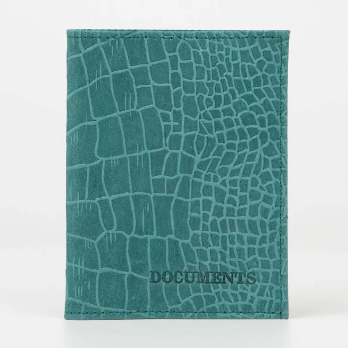 Обложка д/автодокументов 9*0, 5*12 см, нат, КРС крокодил, зеленый 7096784