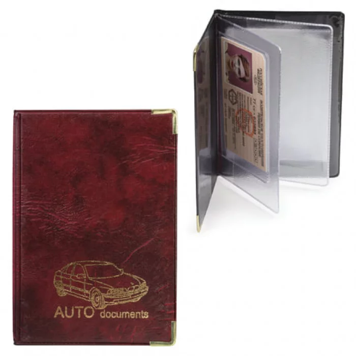 Обложка для автодокументов, 128х92 мм, ПВХ под кожу, печать золотом, цвет ассорти, А5-12