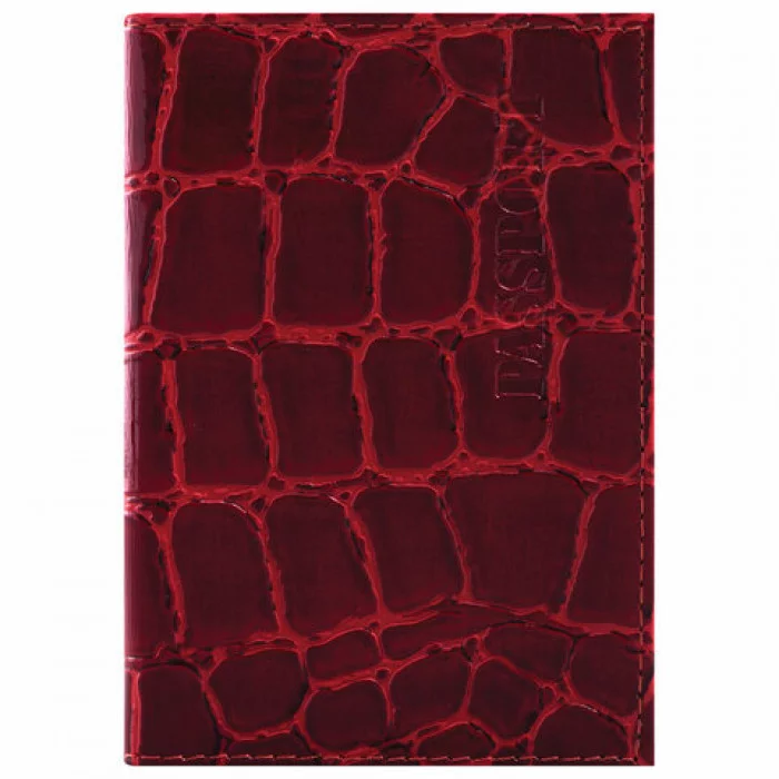 Обложка для паспорта натуральная кожа Croc, "PASSPORT", красная, BRAUBERG, 237180