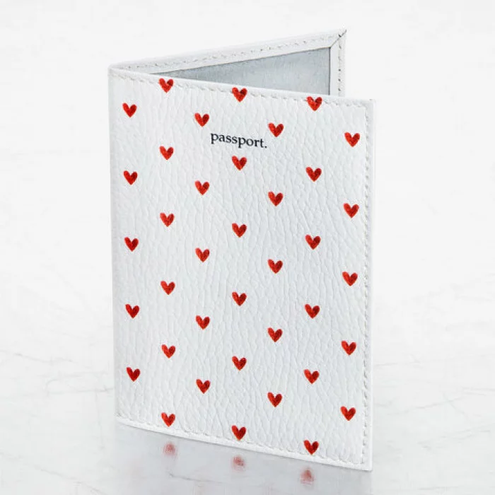 Обложка для паспорта натуральная кожа флоттер, принт "Сердечки", цвет белый, BRAUBERG, 238866