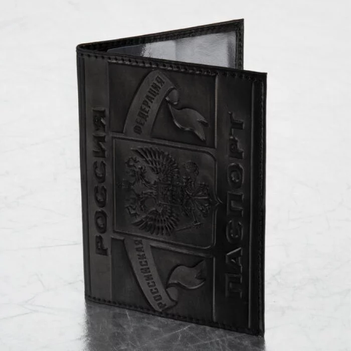 Обложка для паспорта натуральная кожа краст, герб РФ + "ПАСПОРТ РОССИЯ", черная, BRAUBERG, 238209