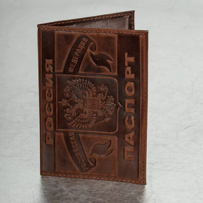 Обложка для паспорта натуральная кожа краст, герб РФ + "ПАСПОРТ РОССИЯ", коньяк, BRAUBERG, 238210