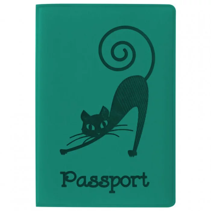 Обложка для паспорта STAFF, мягкий полиуретан, "Кошка", бирюзовая, 237616