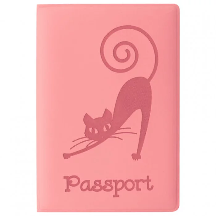 Обложка для паспорта STAFF, мягкий полиуретан, "Кошка", персиковая, 237615