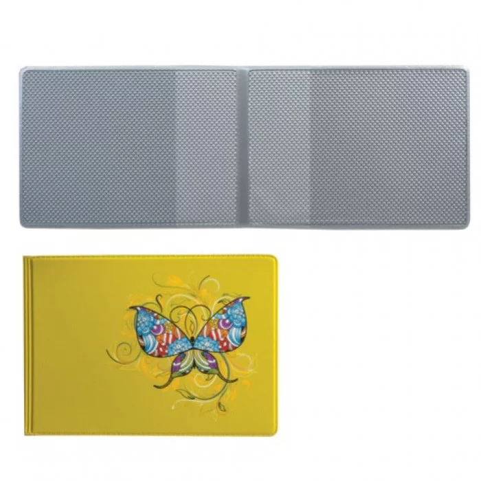 Обложка для пластиковых карт, дорожных билетов, студ. билетов "БАБОЧКА", кожзам, ДПС, 2757.Т1