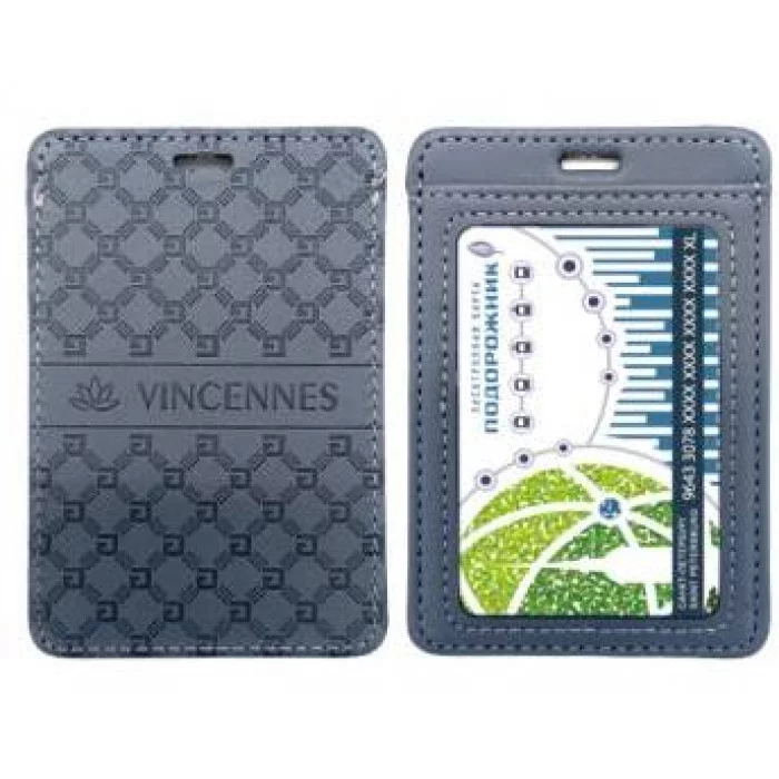 Обложка для проездного билета DC-817 серая "Vincennes" 2 кармана, А7, экокожа с тиснение 329220