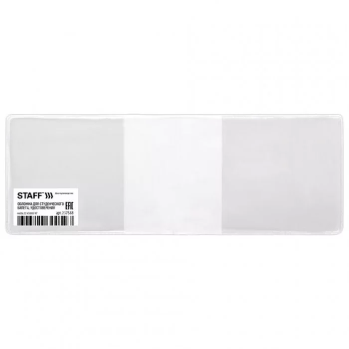 Обложка для студенческого билета, удостоверения, 110х75 мм, ПВХ, прозрачная, STAFF, 237588
