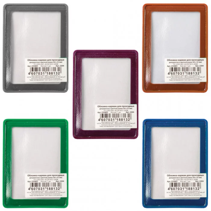 Обложка-карман для проездных документов, ПВХ, в цветной рамке, ассорти, 69*92, ДПС, 2204