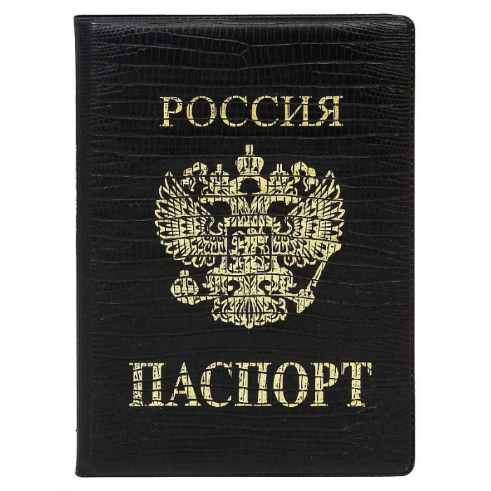Обложка на паспорт "экокожа" чёрная "Золотой стандарт" ОП-7699