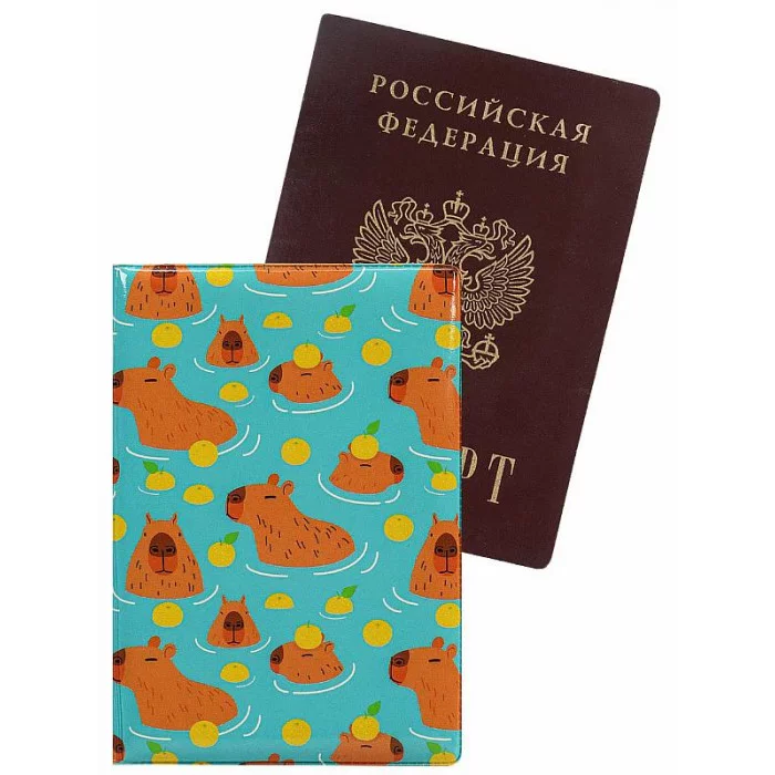 Обложка на паспорт Капибары купаются ПВХ ОП-1303