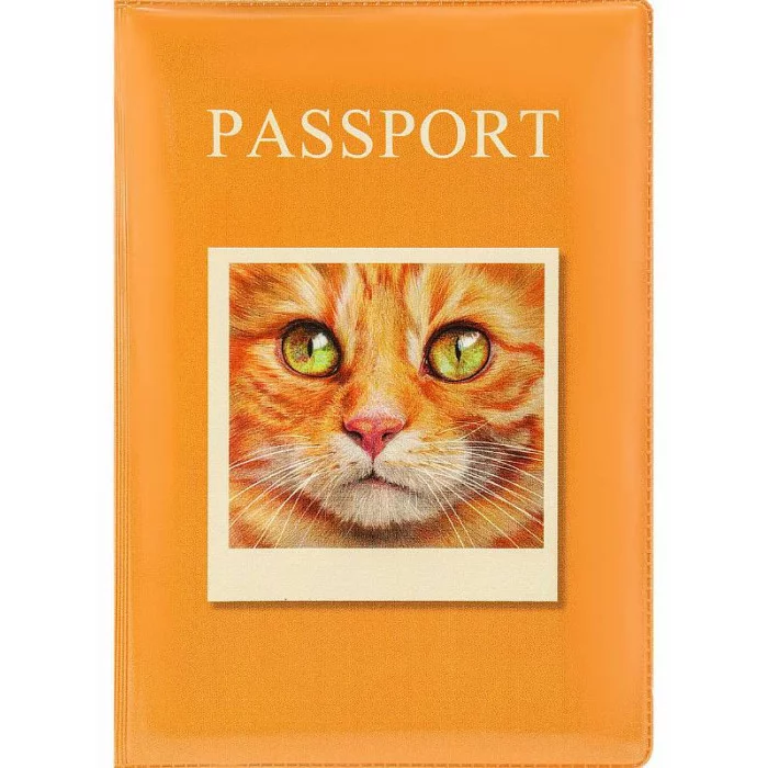 Обложка на паспорт Рыжий котик ПВХ ОП-1295