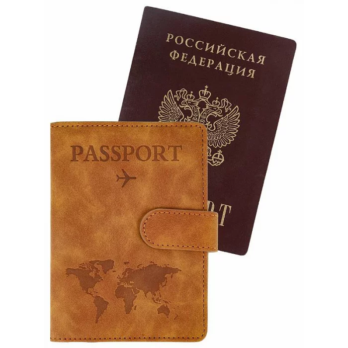 Обложка на паспорт с отсеком для карт на магните "Путешествие", коричневая ОП-9614