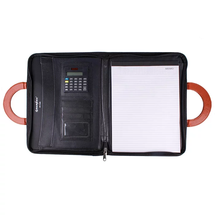 Папка бизнес-органайзер к/з 33х25см +калькулятор+блок А4, с ручками (коричневый) DV-11492