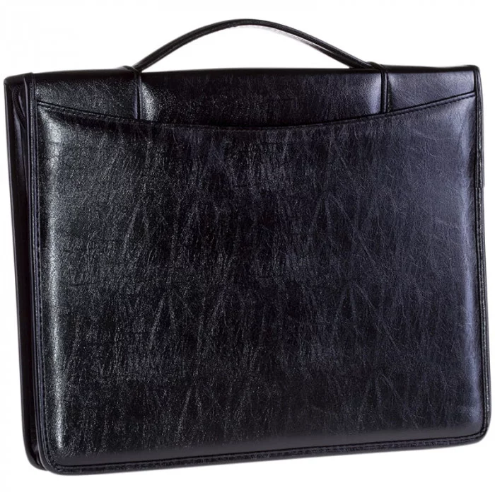 Деловая папка для документов формата А4 из искусственной кожи OfficeSpace. Размер: 360*285*30 мм. Папка имеет одну ручку для переноски, внешние карманы на обеих сторонах, застёжку-молнию. Внутри карман с клапаном на кнопке, крепления для ручек, отделения для визиток. Размер: 360*285*30 мм; Формат: А4; Цвет: чёрный; Материал: кожзам; Количество отделений: 3.