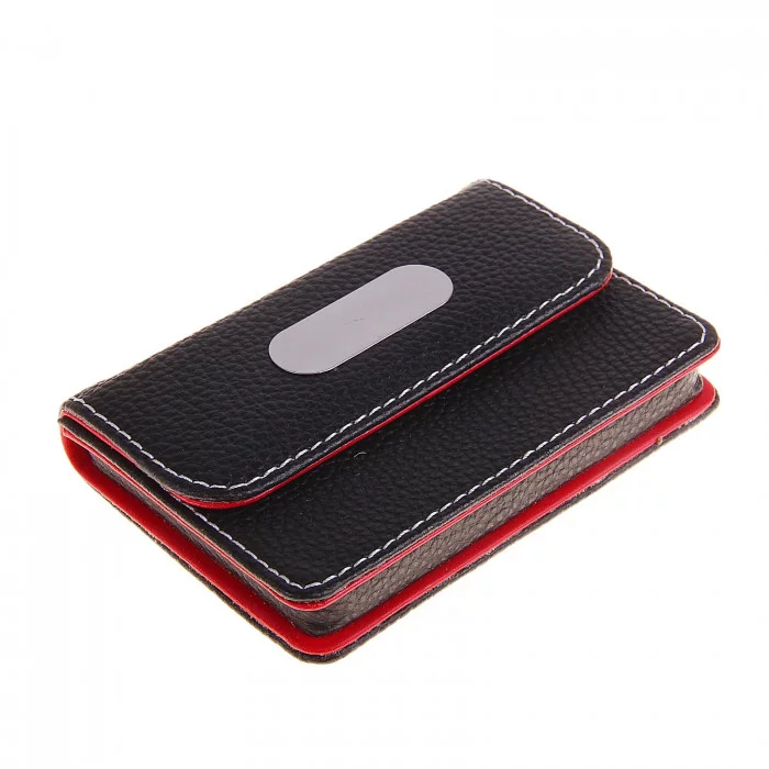 Визитница из искусственной кожи, горизонтальная, с металлической вставкой, цвет черный 108561