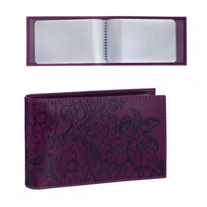 Визитница карманная BEFLER Гипюр на 40 визиток, натур. кожа, тиснение, фиолетовая -74179 235956