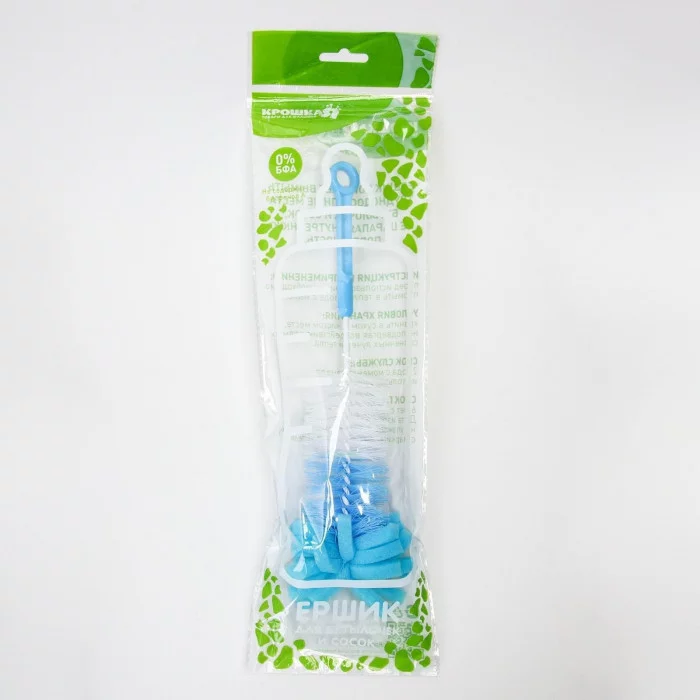 Данная модель легко и быстро устранит загрязнения. Щетина изготовлена из прочного и долговечного материала — нейлона. Поролоновая губка очистит даже труднодоступные места. Покрутите ручку, чтобы смыть налёт со дна и выступов, и удалите остатки пищи, совершая вертикальные движения. На конце ручки находится маленький ёршик для мытья сосок.