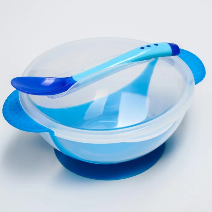 Набор тарелка на присоске с ложкой, синий 1917375