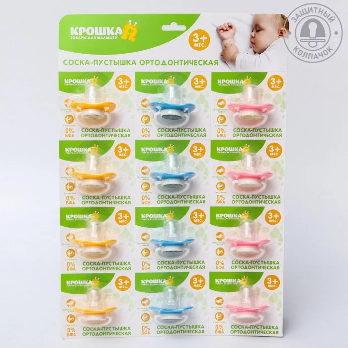 Пустышка ортодонтическая, с колпачком, от 3 мес., на блистере, цвет МИКС 4800405