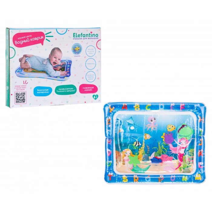 Развивающий игровой центр "Надувной коврик с водой" Elefantino, пищалка, размер коврика 60*50 см, в/к 23*18*3 см