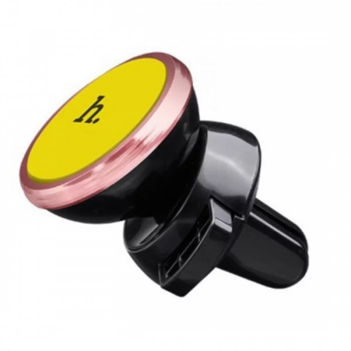 Держатель автомобильный HOCO CA3 для смартфона пластик воздуховод магнит чёрный жёлтая вставка 6957531031628