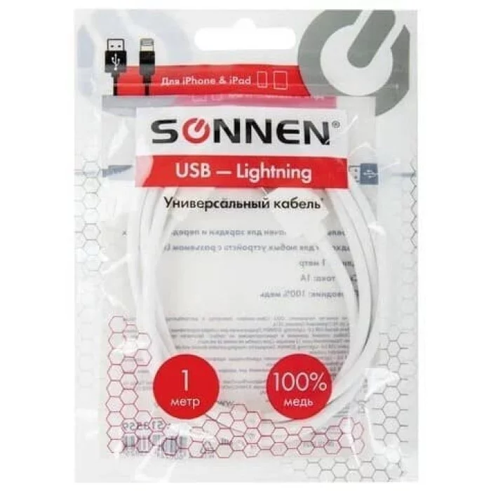 Кабель SONNEN USB-A - LIGHTNING предназначен для быстрой и безопасной зарядки портативных устройств.