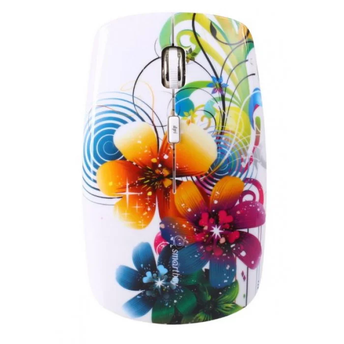 Мышь беспроводная Smart Buy 327AG, принт цветы. Разрешение: 1000-1600 dpi. Кнопок: 4 + колесо прокрутки. Дизайн для правой и левой руки. Оптический сенсор позволяет работать практически на любой поверхности. Функция атоматического отключения питания мыши. Радиус: 10 м. (1/40)