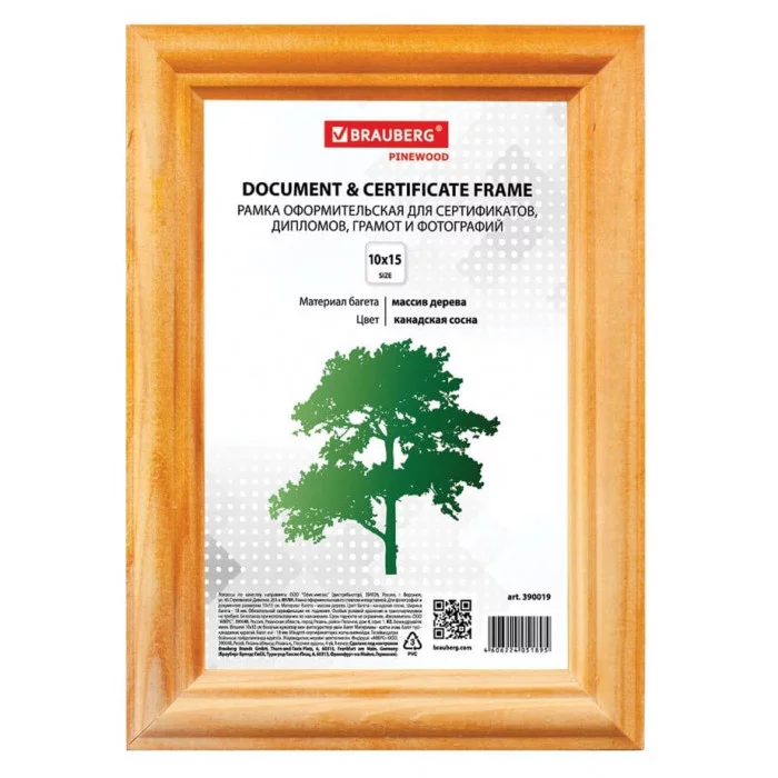 Рамка BRAUBERG "HIT" для оформления фотографий, дипломов, сертификатов, грамот, лицензий и других документов формата А6 (10х15 см) будет гармонично смотреться в любом интерьере - дома и офисе, учебных учреждениях и магазинах, салонах и предприятий и др. Выполнена из дерева цвета "канадская сосна", за счет чего отлично впишется в домашний и деловой интерьер. Имеется возможность вертикального и горизонтального подвеса, а наличие подставки позволит установить рамку на столе. Ширина багета - 18 мм. Аккуратный вид достигается благодаря стеклянной вставке. Микрогофрокартон обеспечивает плотное прилегание и отсутствие в будущем деформации содержимого в рамке. Термоусадочная пленка гарантирует сохранность рамки при транспортировке, отсутствие сколов и потертостей.