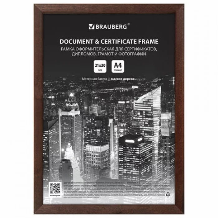 Рамка BRAUBERG "Elegant" для фотографий, дипломов, сертификатов, грамот и других ценных документов гармонично будет смотреться как в офисном, так и в домашнем интерьере, а также в салонах и предприятиях, в магазинах и различных учреждениях. Рамка формата А4 (21х30 см) выполнена из дерева цвета "венге", за счет чего отлично впишется в домашний и деловой интерьер. Имеется возможность вертикального и горизонтального подвеса. Ширина багета - 14 мм. Благодаря вставке из пластика вместо стекла, рамка является менее хрупкой. Переплётный картон обеспечивает плотное прилегание и отсутствие в будущем деформации содержимого в рамке. Поставляется в термоусадочной плёнке, которая гарантирует сохранность рамки при транспортировке, отсутствие сколов и потертостей.