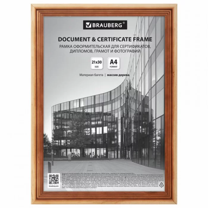 Рамка BRAUBERG "Business" для фотографий, дипломов, сертификатов, грамот и других ценных документов гармонично будет смотреться как в офисном, так и в домашнем интерьере, а также в салонах и предприятиях, в магазинах и различных учреждениях. Рамка формата А4 (21х30 см) выполнена из дерева цвета "светлое дерево", за счет чего отлично впишется в домашний и деловой интерьер. Имеется возможность вертикального и горизонтального подвеса. Ширина багета - 20 мм. Благодаря вставке из пластика вместо стекла, рамка является менее хрупкой. Переплётный картон обеспечивает плотное прилегание и отсутствие в будущем деформации содержимого в рамке. Поставляется в термоусадочной плёнке, которая гарантирует сохранность рамки при транспортировке, отсутствие сколов и потертостей.