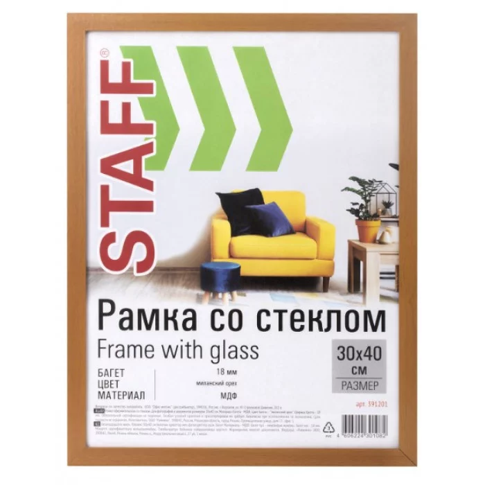 Рамка STAFF "Grand" с фотографиями, наградами, дипломами, сертификатами и другими ценными документами гармонично будет смотреться на стенах дома и офиса, салонов и предприятий, магазинов и различных учреждений. Рамка формата А3 (30х40 см) выполнена из материала МДФ в цвете "миланский орех", за счет чего отлично впишется в домашний и деловой интерьер. Имеется возможность вертикального и горизонтального подвеса. Ширина багета - 18 мм. Аккуратный вид достигается благодаря стеклянной вставке. Микрогофрокартон обеспечивает плотное прилегание и отсутствие в будущем деформации содержимого в рамке. Поставляется в термоусадочной пленке, которая гарантирует сохранность рамки при транспортировке, отсутствие сколов и потертостей.