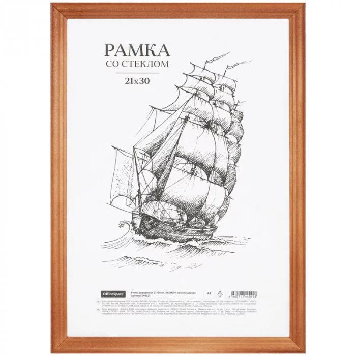 Рамка деревянная 21*30см, OfficeSpace, ЭКОНОМ, красное дерево 340125