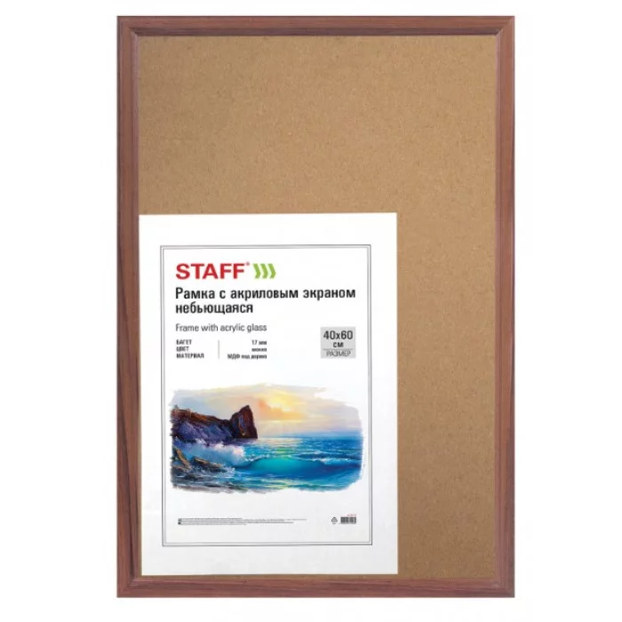 Рамка НЕБЬЮЩАЯСЯ 40х60 см, МДФ под дерево, багет 17 мм, мокко, акриловый экран, STAFF "Carven", 391223