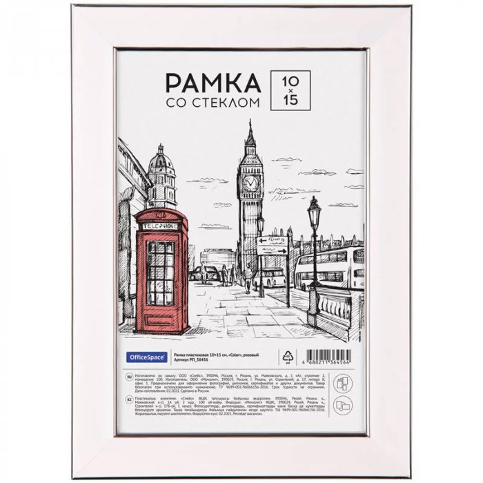 Рамка OfficeSpace Color подчеркнёт общий дизайн помещения и сбережет важные и счастливые моменты из вашей жизни. Подходит как для вертикального, так и для горизонтального размещения. Рамка со стеклом размером 10*15 см изготовлена из ПВХ розового цвета. Оборотная сторона изготовлена из переплётного картона. Предусмотрена ножка для использования на горизонтальных поверхностях. Тип: рамка; Размер: 10*15 см; Материал: ПВХ; Цвет: розовый.