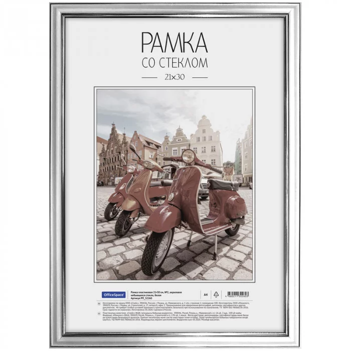 Рамка пластиковая 21*30 см, OfficeSpace, №2, акриловое небьющееся стекло, белая 301354