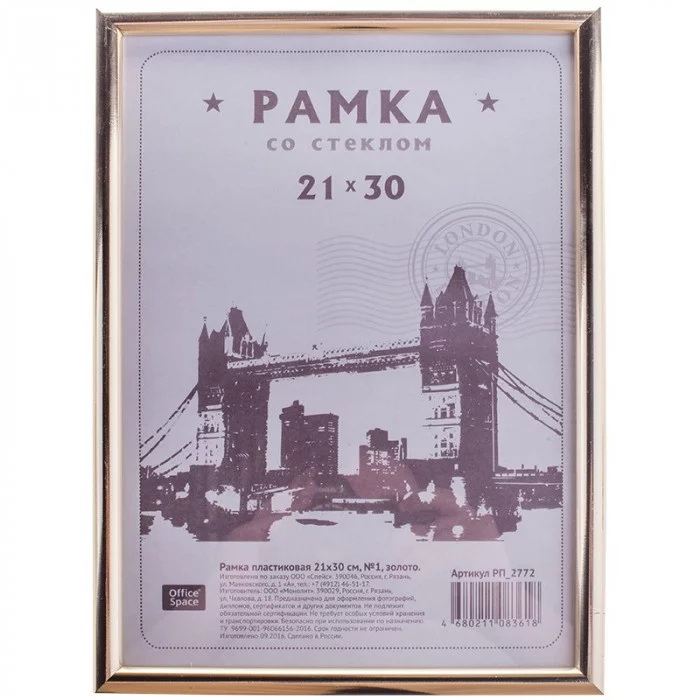 Рамка пластиковая 21*30см, OfficeSpace, №1, золото Спейс 188156