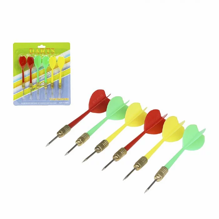 Дротики — незаменимые аксессуары для игры в дартс! Они имеют цилиндрическую форму и острые наконечники, а также хорошую балансировку и дизайн. В наборе 6 шт.