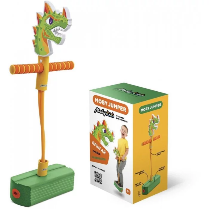 Тренажер Moby Jumper завоевывает сердца детей с молниеносной быстротой! Прыгать на тренажере Moby Jumper не только очень просто, но и очень полезно -- для развития координации движений и укрепления разных групп мышц. Ну а про восторг, который испытывают дети от такого веселого времяпрепровождения, и говорить не приходится! Moby Jumper «Дино» состоит из мягкой опоры для ног, эластичных ремней и ручки-перекладины. Забавный звук, издаваемый при каждом прыжке, увлекает ребёнка прыгать снова и снова!Голова динозавра является декоративным элементом тренажера. Не держитесь за голову динозавра во время прыжков, во избежание поломки тренажера и травмирования пользователя. Не дергайте и не тяните декоративный элемент, иначе он может оторваться. Используйте тренажер, держась только за специальные ручки! Тренажер выдерживает нагрузку до 50 кг. Использовать под наблюдением взрослых! Изделие изготовлено из термополиуретана и EVA с элементами пластмассы и резины. Рекомендованный возраст: 3-8 лет.