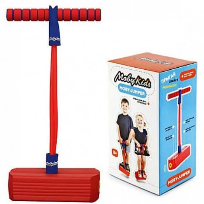 С тренажером для прыжков Moby-Jumper ребенок всегда находится в движении. Тренажер имеет яркий дизайн, состоит из упругой опоры для ног, эластичных шнуров и удобных ручек. Джампер прост и безопасен в использовании, во время прыжков издается веселый звук по типу пищалки.