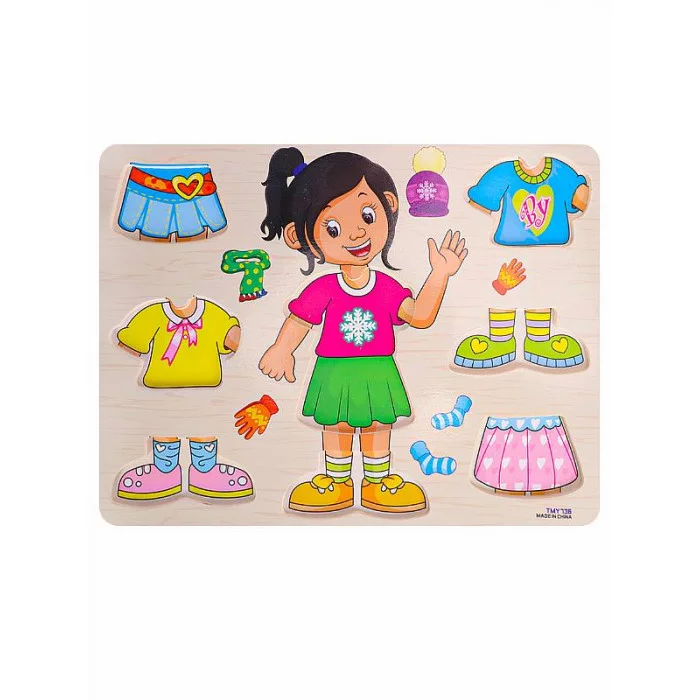Деревянная игрушка. Рамка-вкладыш (30х22см) "ОДЕВАШКА. ДЕВОЧКА" (в слюде) Арт.AN02737