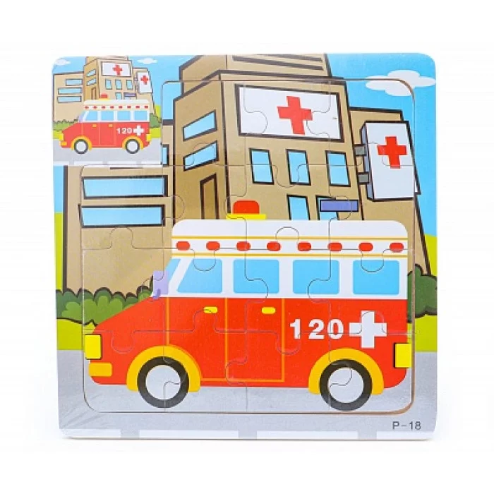 Деревянная пазл-рамка (15х15) "МАШИНА СКОРОЙ ПОМОЩИ" (16 элементов) (арт. G138) G138