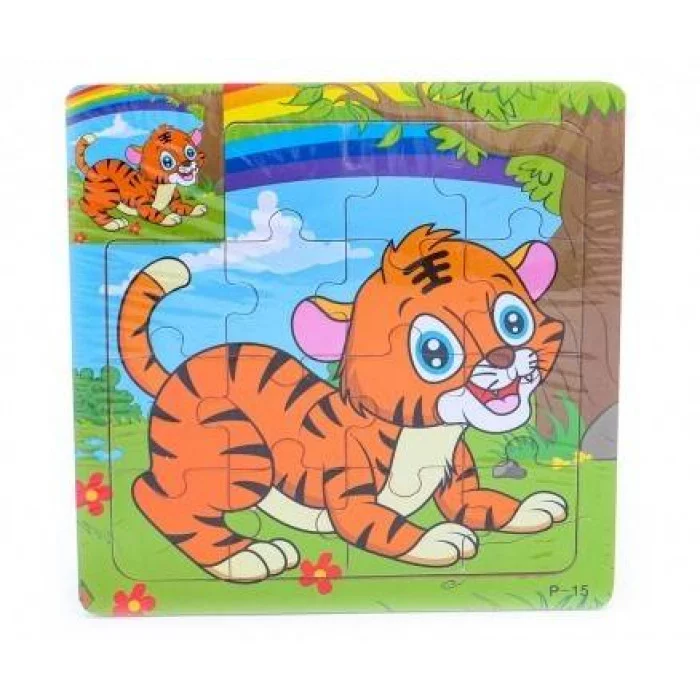 Деревянная пазл-рамка (15х15) "ТИГРЕНОК" (16 элементов) (арт. G150) G150