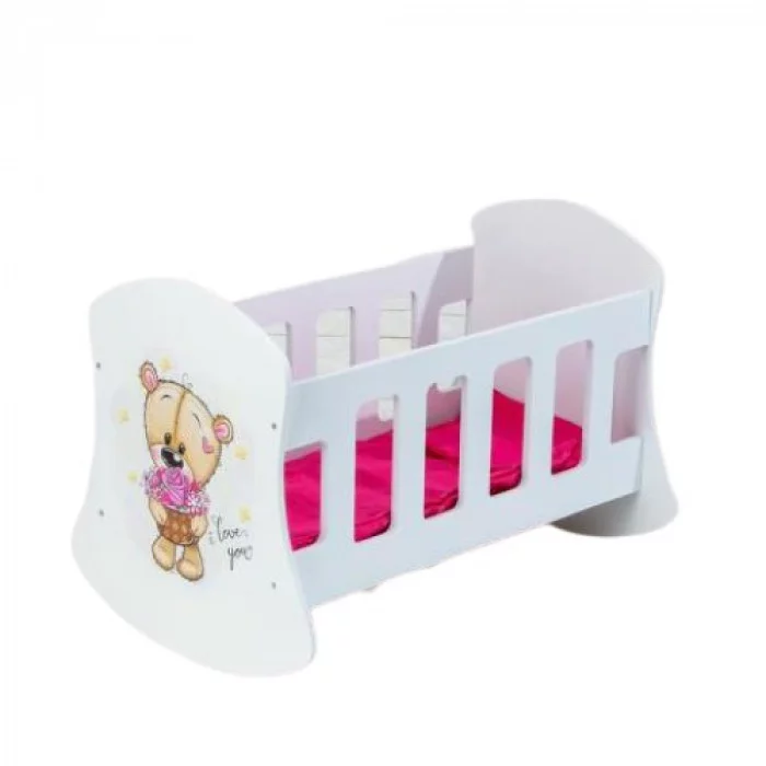 Кукольная кроватка - люлька с полноцветным печатным рисунком на спинке и комплектом белья для кукол до 45 см.