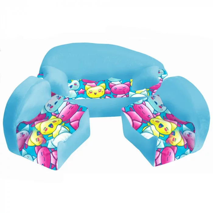 Мебель мягкая Диван+2 кресла+2подушки "Хор котят бирюзовый" с бирюзовым плюшемНМ-002/2-32 НМ-002/2-32