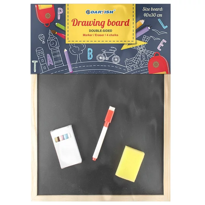 Доска для рисования двусторонняя маркерно-меловая 40*30см+губка+маркер+4мелка DV-9790
