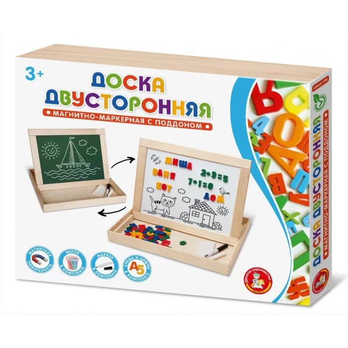 Доска двухстронняя магнитно-маркерная с поддоном станет хорошим помощником для Вашего малыша, как при подготовке к школе, так и в дальнейшем обучении.