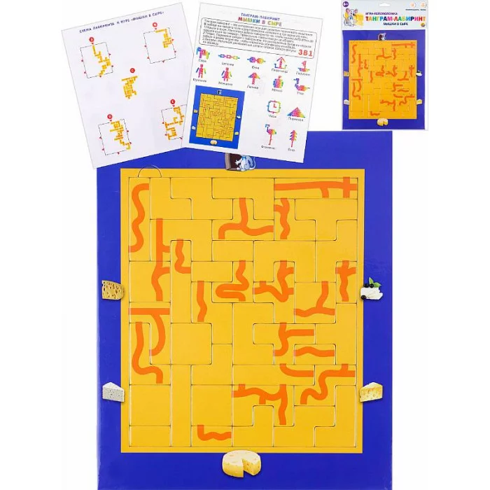 Рамка-вкладыш Танграм-лабиринт "Мышки в сыре" — увлекательная головоломка, которая понравится и детям, и взрослым! Обучающая головоломка состоит из 1 игрового поля-рамки и вкладышей различной формы. Танграм способствует развитию у детей наглядно-образного мышления, воображения, внимания, понимания цвета, величины и формы, восприятия, комбинаторных способностей. Количество деталей: 39 штук.