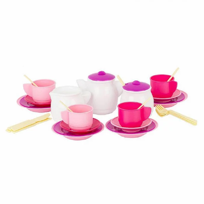 Размеры упаковки: 25х13х16см Состав: пластик Упаковка: сумка Комплектация: 33 предмета Страна-производитель: Россия Набор игрушечной посуды из 33 предметов поможет провести веселое чаепитие в кругу друзей или с любимыми игрушками. В комплект входят чайник, сливочник, сахарница, чашки, блюдца, ложки, вилки и ножи - играя с такими приборами ребенок не только отлично проведет время, но и познакомится с их назначением и правилами поведения за столом. Набор изготовлен из высококачественной пластмассы, не имеет острых частей и зазубрин. Цвета представлены в ассортименте.
